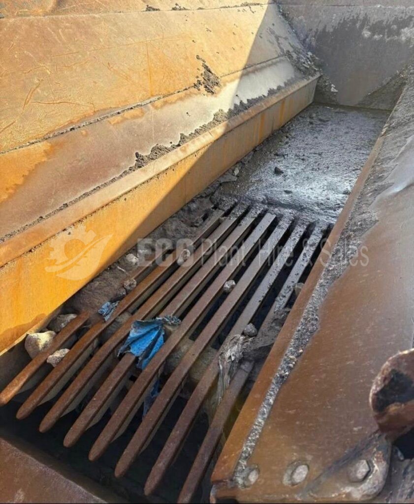 Hopper with pan feeder with grizzly section,